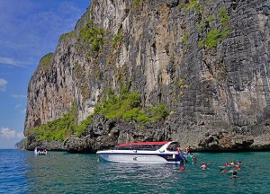 Speedboats for snorkeling in the Andaman Sea at Thailand’s Phi Phi Islands is this week’s outtake from my book, ‘Cruising…